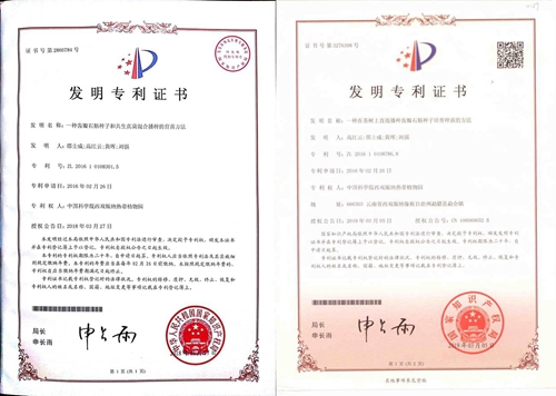 相关技术方法“一种齿瓣石斛种子和共生真菌混合播种的育苗方法”和“一种茶树上直接播种齿瓣石斛种子培育种苗的方法” 分别获得了国家知识产权局专利保护,专利授权号分别为:ZL201610108301.5和ZL201610108786.8。