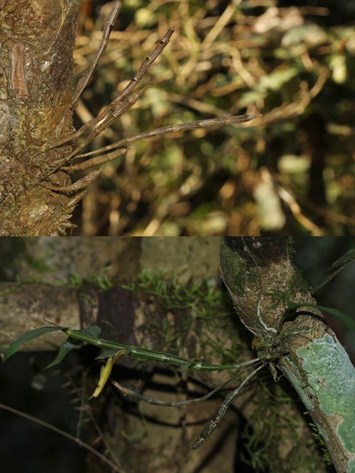 目前,研究团队在获得齿瓣石斛种子萌发有效真菌的基础上,基于齿瓣石斛的附生特性和共生萌发技术在云南省景洪市基诺乡亚诺村龙帕古茶园,勐腊县易武乡易比古茶园进行了种子-真菌直播尝试。通过不断摸索实验条件,改变播种方法,齿瓣石斛种子野外成功萌发并形成幼苗,萌发率高达9.4%,远高于文献报道“兰科植物种子萌发率仅在万分之一左右”,现幼苗生长状态良好,形成一个种群。