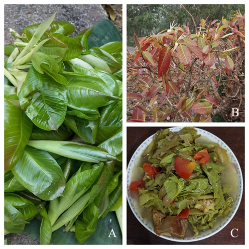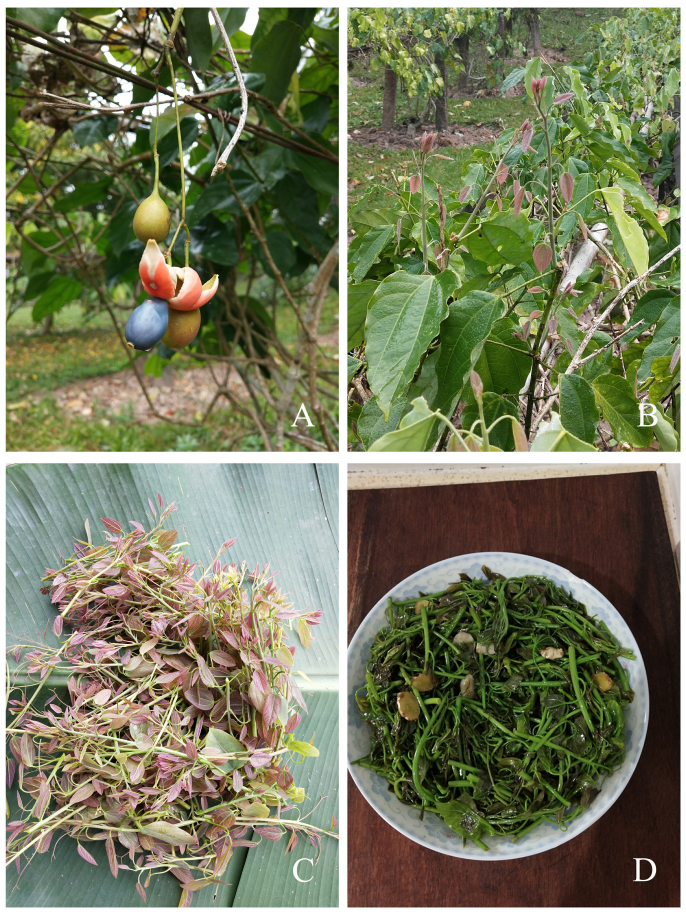 具不完全统计,我国29000余种种子植物中(据Flora of China),可食用野生植物约150-200种(已市场商品化)。而南部热带、亚热带一些地区,得天独厚的地理位置,优良的自然环境造就了物种丰富的多样性。生长在这里的1万多种植物为野生植物食用提供了多样选择。天然、环保、无公害的野菜比比皆是。当地民族充分利用这些食材创造出别具匠心、独具特色的民族食文化。“一动就是肉食,一绿就是菜肴”,约120余科500种以上植物被当地民族食用(笔者曾食过、见过记录,约150-200种市场销售过)。最广泛、常见的可食种类如榕属(Ficus)30种、葫芦科(绞股蓝属Gynostemma、苦瓜属Momordica等)50种、菊科20种、紫葳科20种。按采集时间分冬春季采食(约200种,食用部位为幼叶茎、花、幼果及宿存根);夏秋季采食(熟果);全年采食(如蓼属Polygonum,折耳根Houttuynia cordata)。