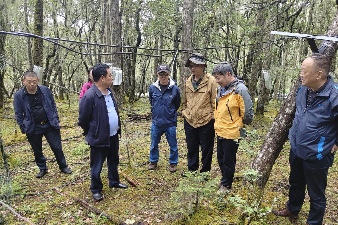 调研普达措国家公园内建设中的森林动态样地