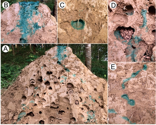 图2. 白蚁堆的排水疏导状况(染色示踪)
